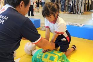 会場となったイオンショッピングセンター乙金(大野城市)のイベント広場にて、救急法や身近なものを使った応急手当の体験コーナーを設け、多くの方にご参加いただきました。