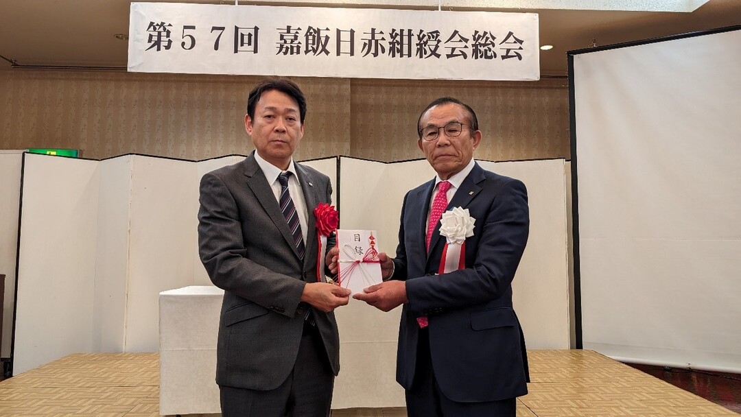 この総会の中で嘉飯日赤紺綬会様より、「令和6年能登半島地震義援金」として1,000,000円が寄託されました。