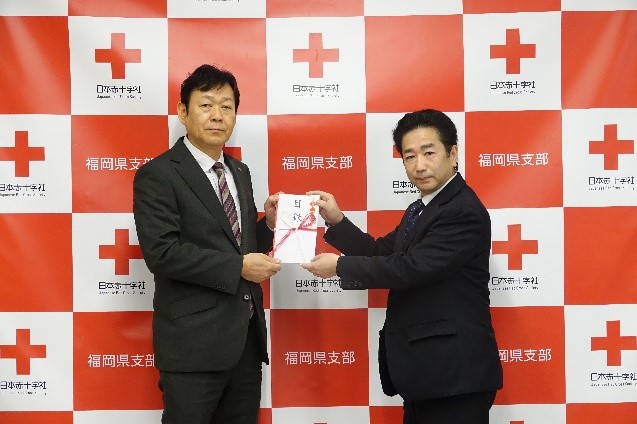 本県支部で行われた贈呈式では、管理部課長 黒田様は「震災の影響で生活に困っている方が少しでも元の生活を送れるよう使っていただきたい」と話されていました。