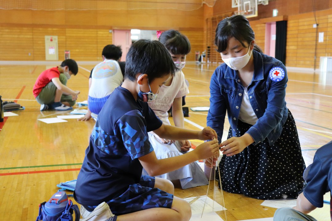 BCWとは災害時におけるコミュニケーションの大切さを学ぶためのもので、今回は竹ひごタワーづくりに挑戦してもらいました。