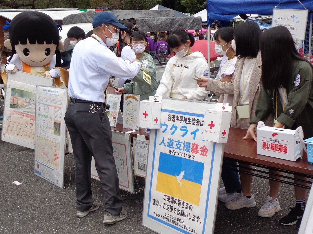 生徒の皆さんは「ウクライナ募金の協力をお願いしまーす」「皆さんのお力で、みんなが元気になりまーす」と大きな声で募金を呼びかけたほか、イベント運営のボランティアにも積極的に参加し、地域の方々と楽しく会話をするなど、とても充実した地域交流を行っていました。