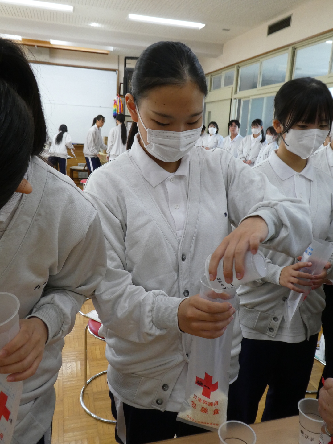 令和5年10月23日(月)、岐阜県立大垣桜高等学校 福祉課 2年の生徒35名が高校生や将来の福祉従事者が『災害時に何ができるのか』を考えるため”災害時における炊き出し”と”救急法”を学びました。