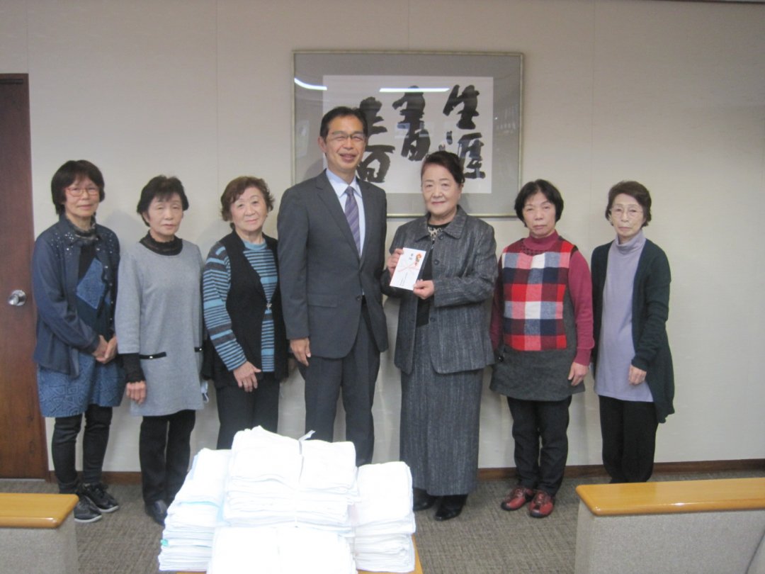 笠松町赤十字奉仕団が笠松町と社協へ手づくりぞうきんと寄付金を寄贈