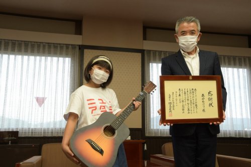 「熱海を助けたい」路上ライブで義援金を呼びかけた高山市の小学3年生に感謝状を贈呈しました。