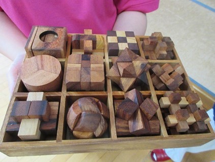 川辺町赤十字奉仕団が福祉施設にウッドパズルを寄贈
