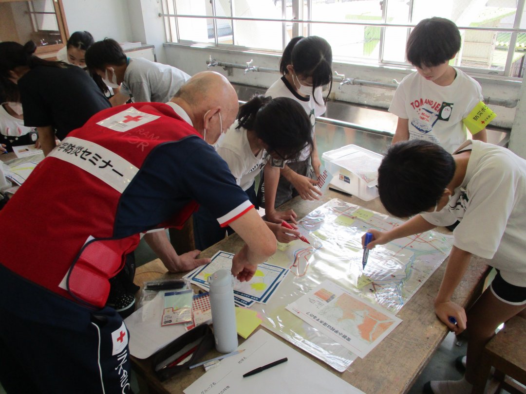 大垣市立青墓小学校の児童が大雨災害について日赤職員と一緒に考えました