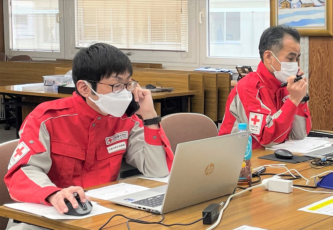 その際には、普段の災害対応に加えて、日赤本社や各支部等と迅速に連携を図り、救護活動の計画調整等を行う必要があるため、特にその初動の部分について、日赤東京都支部の職員からの助言を得ながら訓練を行いました。