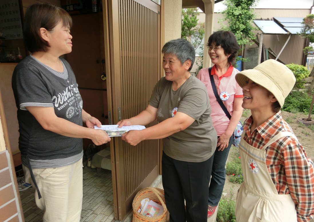 赤十字の「苦しんでいる人を救いたい」という考えに共感していただける方を増やすべく、地域住民の方へ赤十字活動の説明・会員募集の案内をしていただいています。