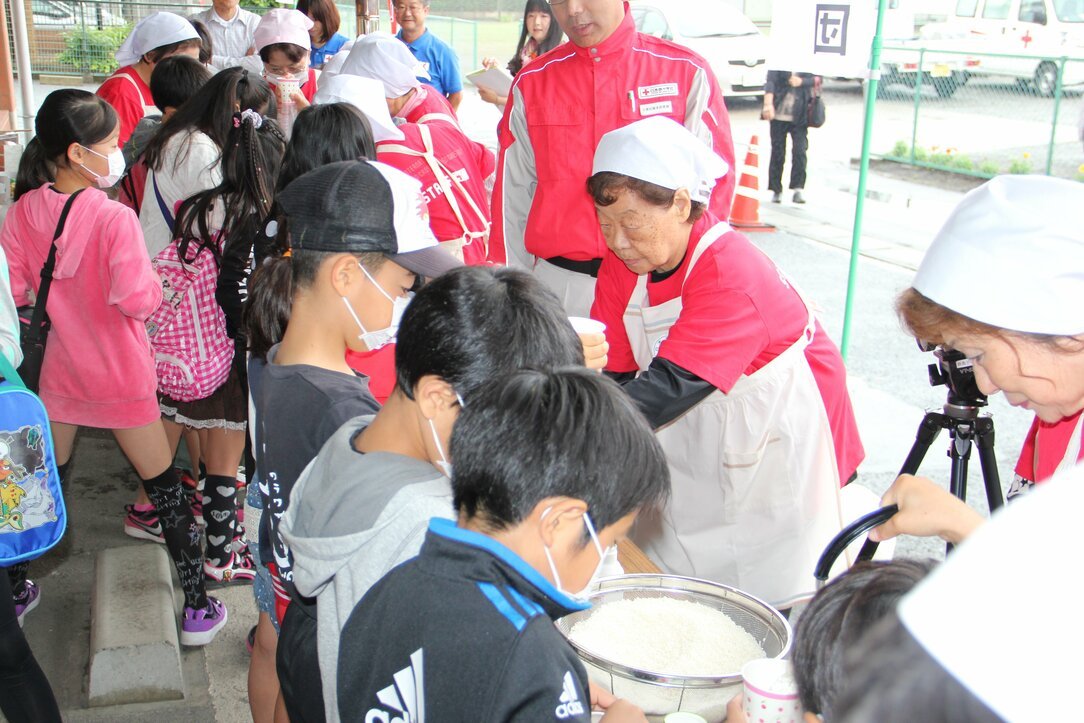 地域自治会の防災訓練や各種イベントで炊き出し訓練を行っています。地域によっては子ども会と協力して、日頃から災害に備える意識を持つことの大切さを子どもたちに伝えています。