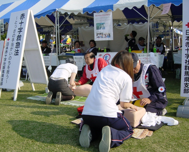 主に桐生市をはじめとした東部地域で人々の健康と安全や福祉の向上を目指し、救急法等の講習普及や、福祉イベントへの協力など地域に根差した活動を行っています。