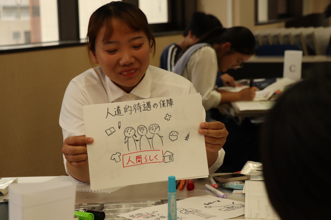 後半には、「学んだ国際人道法の大切さをどう周囲に伝えていくか」をテーマにワークを実施。参加者の皆さんはショートムービーを作成し、創意工夫をこらしながら意欲的に学びをアウトプットしていました。