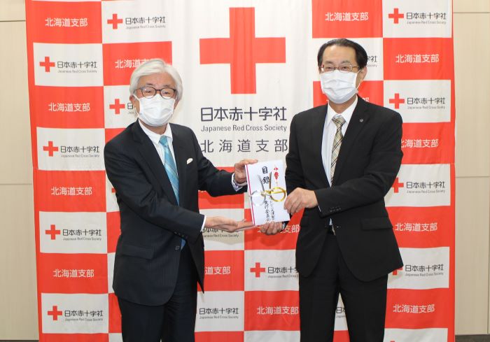 3月29日(火)、「ほっかいどう大運動会実行委員会」様より、子どもたちの防災教育や新型コロナに関わる医療従事者への支援に役立てて欲しいと、100万円を当支部にご寄付いただきました。