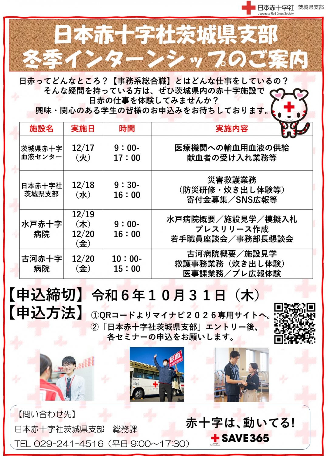 日本赤十字社茨城県支部合同インターンシップを開催いたします。マイナビサイトよりお申し込みください。