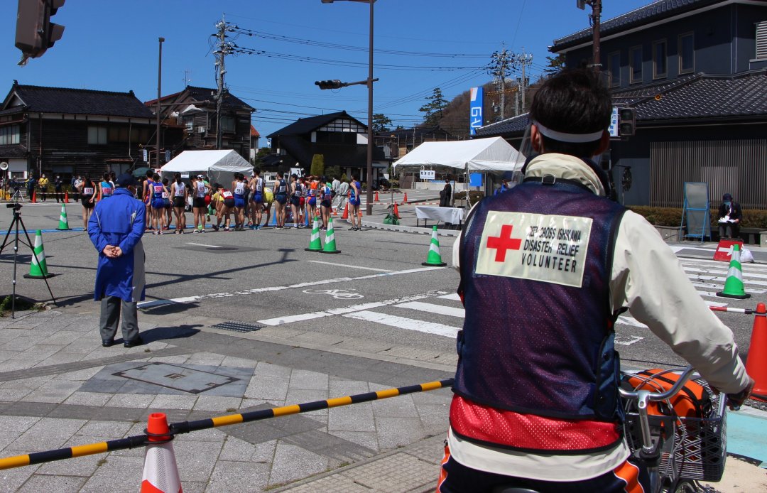 4月10日(土)、11日(日)に開催された「全日本競歩輪島大会」「日本陸上競技選手権大会50㎞競歩」に安全法奉仕団員、支部職員が救護スタッフとして参加し、活動を行いました。