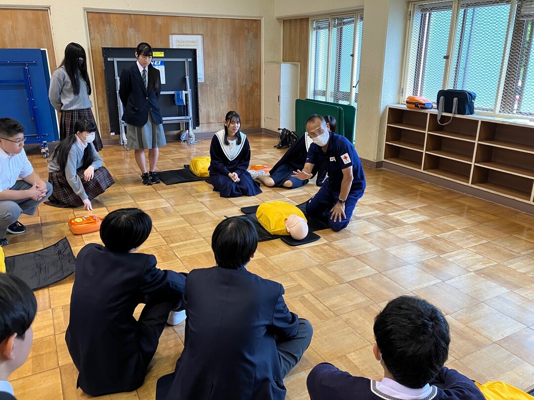 石川県支部は「令和6年能登半島地震での活動」、「一時救命処置」、「三角巾を使ったきずの手当」の3つの講座を担当し、赤十字の活動について知っていただく機会をいただきました。また、全体では各校JRC部の活動紹介、一年生向けのJRC講座などがあり、高校生たちは交流を深めている様子でした。