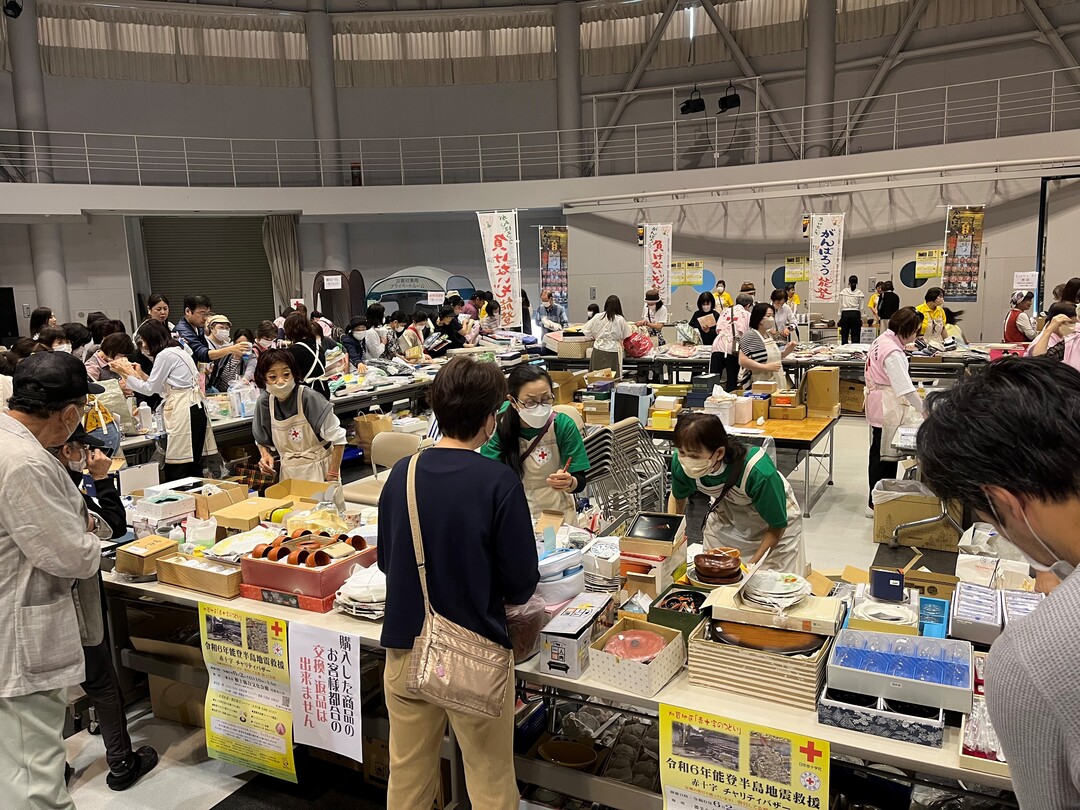 6月2日(日)に加賀地区の赤十字奉仕団が能美市根上総合文化会館でチャリティーバザーを開催しました。今年は「令和6年能登半島地震救援」がテーマとなっており、衣類や食器などの日用品に加え、珠洲焼など能登の物産販売コーナーも設置され、能登の支援を行いました。