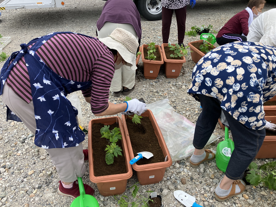 6/4(火)志賀町の仮設住宅にて町役場・社会福祉協議会・志賀町赤十字奉仕団と共同で熱中症予防啓発活動を行いました。前半の熱中症セミナーでは、水分塩分補給の大切さや暑さに身体を慣らすことなど、熱中症対策について学び、後半はプランターにゴーヤの苗を植え、ネットを張るなどしてベランダのグリーンカーテンを作りました。皆さん楽しみながら活動されており、成長を楽しみにされていました。