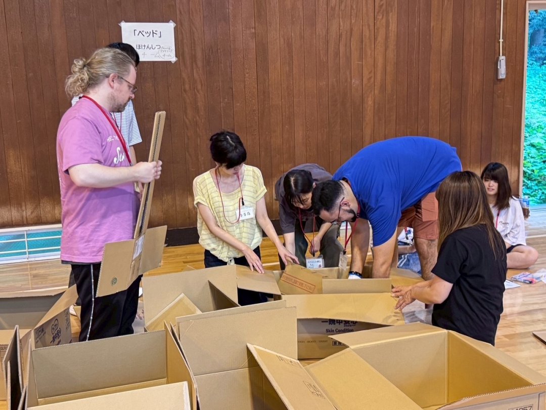 最初は緊張した様子でしたが、避難所での段ボールを使った家具作りや避難所運営のシミュレーションゲームなどを通して、異文化コミュニケーションを体験していく中で連帯感が生まれて、参加者の皆さんの中のボーダー(境界)もなくなっていくのを感じました。