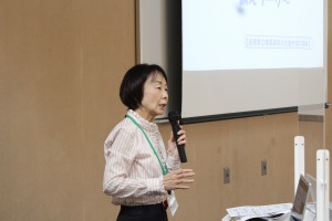 講師として、倉敷市立薗小学校長の高津智子先生をお招きしました。倉敷市真備町は、平成30年7月の西日本豪雨で甚大な被害を受け、そこにある薗小学校は、7月6日から10月1日まで避難所となり、その間9月3日からは、避難所として使われている中で学校も再開されました。