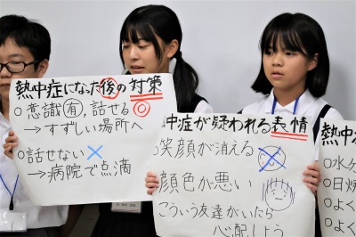 いずれのグループの発表も、挨拶、掲示板の活用、学級委員の選出など、学校での生活や活動の中で気づいたことをテーマに、相手や周りの気持ちに立って、どのように行動すればよかったのか考え、具体的な提案を行うものであり、寸劇を交えるなど、発表の方法にも各グループの個性が表れる素晴らしい内容でした。
