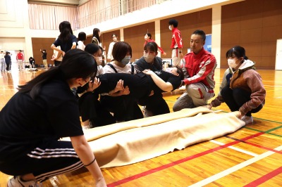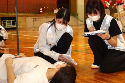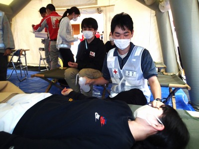 この研修会は、災害救護活動に必要とされる基礎的な知識と技術を習得するために行うもので、今年度は59名が参加しました。