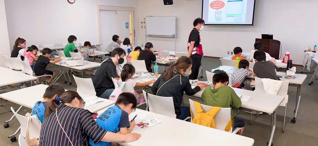 7月29日、リナシティ鹿屋で、鹿屋市社会福祉協議会主催のイベント「親子で学ぶボランティア体験学習」が開催され、小学校1~3年生の児童とその保護者、合計23名が参加しました。