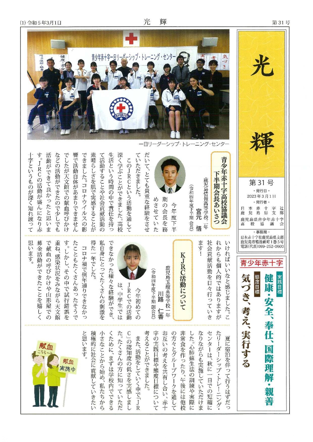 鹿児島県青少年赤十字 高校協議会 機関紙「光輝」