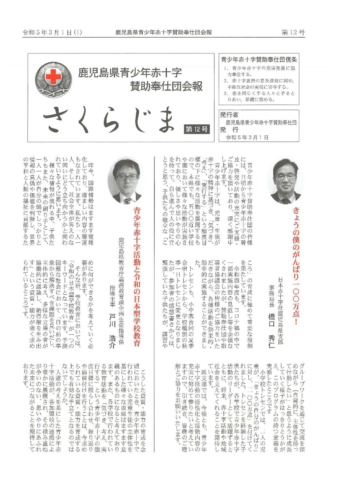 鹿児島県青少年赤十字指導者協議会が年1回発行している会報です。