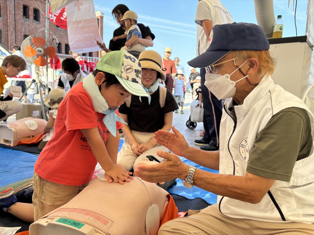 9月7日(土)8日(日)に横浜赤レンガ倉庫で開催された「横浜防災フェア2024」に心肺蘇生とAEDの体験ブースを出展しました。