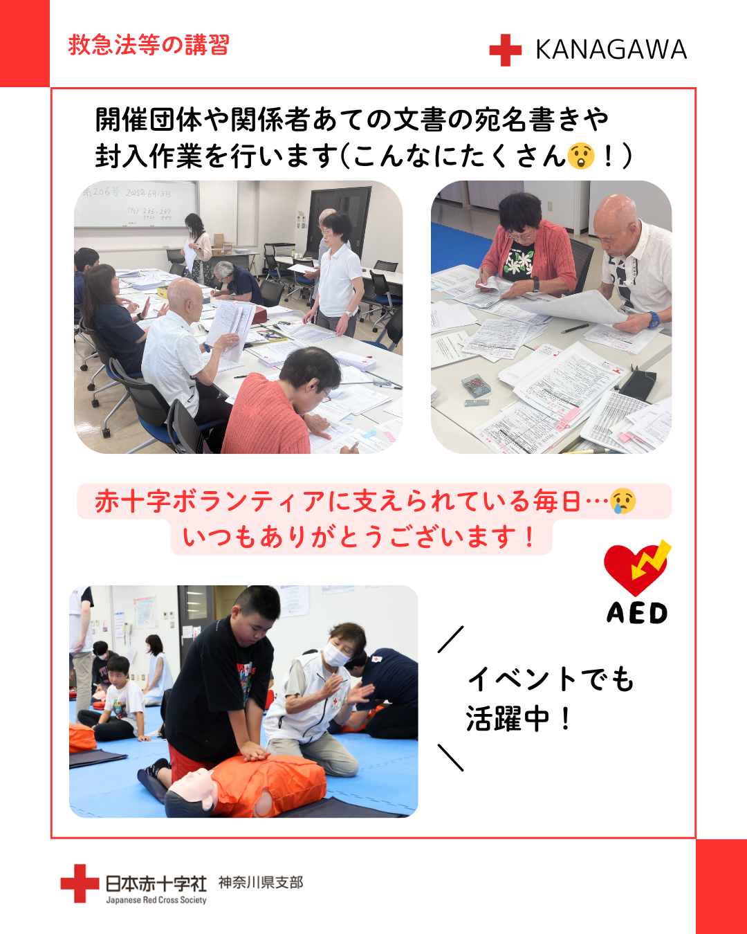 \赤十字ではほぼ毎日、神奈川県内で応急手当等に関する講習会を行っています/