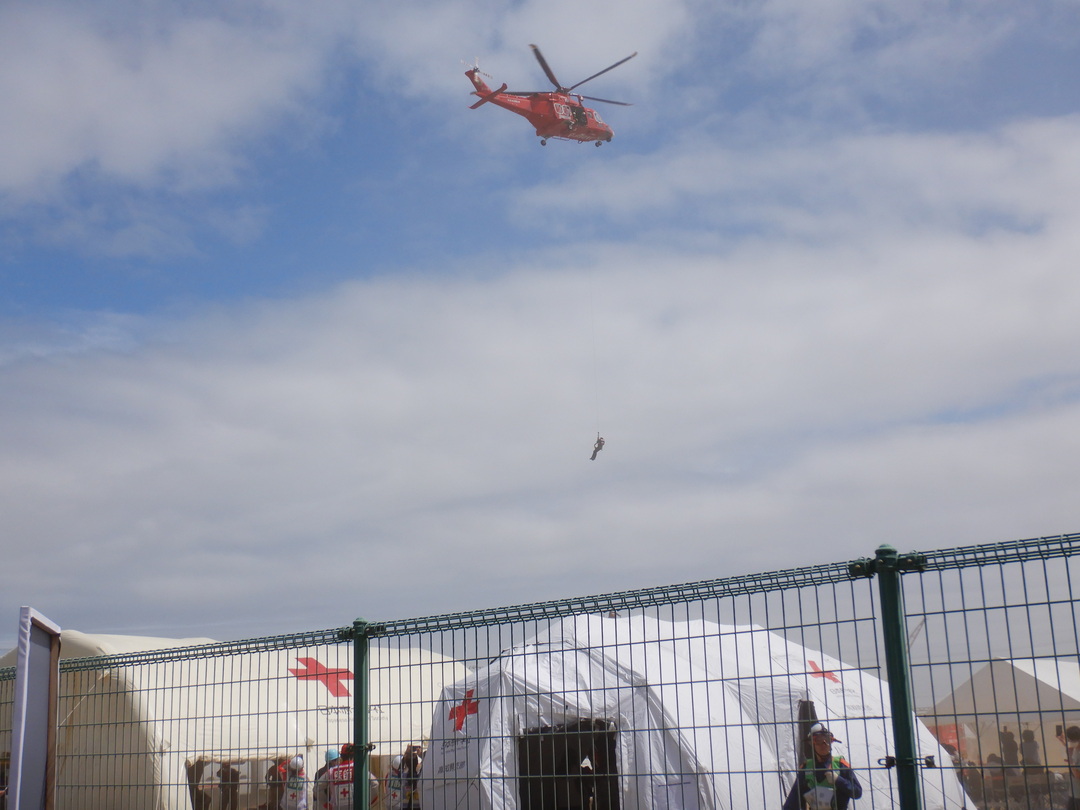 訓練会場では、ヘリを使った救助訓練も行われました