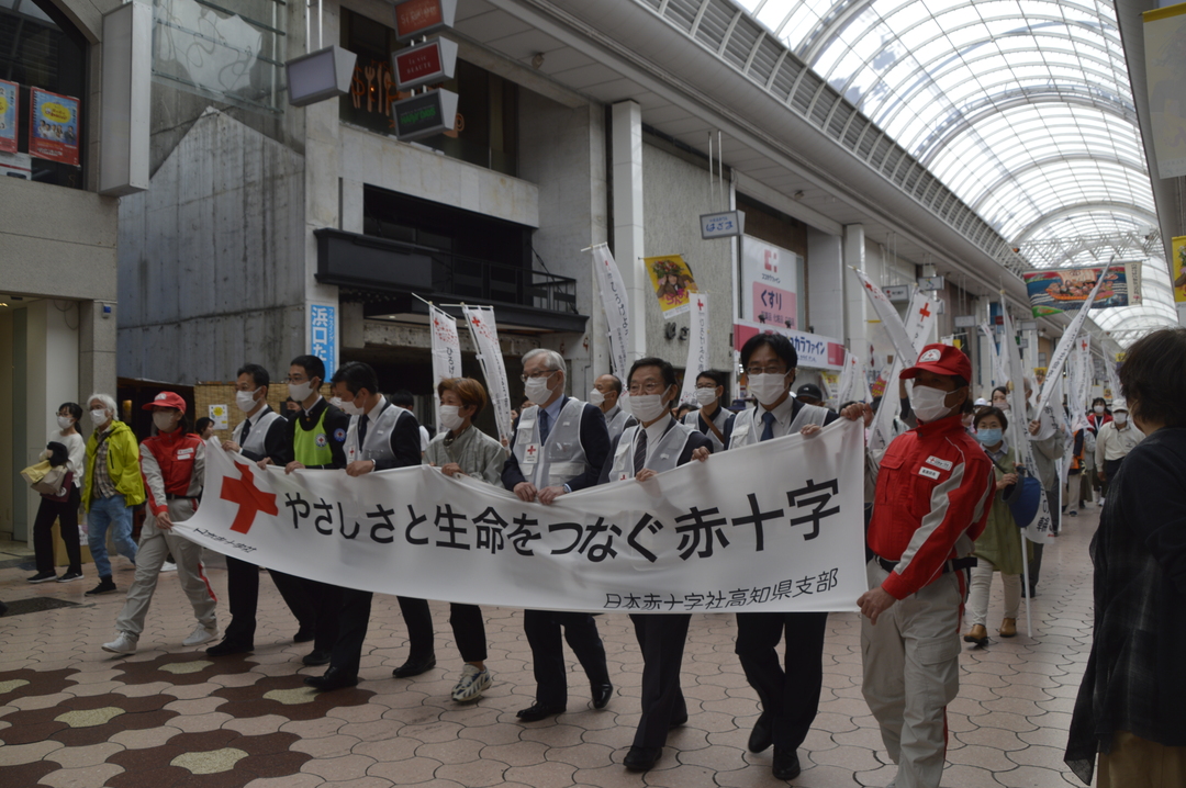パレードでは先導を務める土佐女子高等学校の吹奏楽部に続き、赤十字のボランティアおよび青少年赤十字加盟校の生徒さん(土佐高校、土佐女子中学・高等学校、北高校)らが県民の皆様に赤十字活動へのご理解・ご協力を呼びかけます。