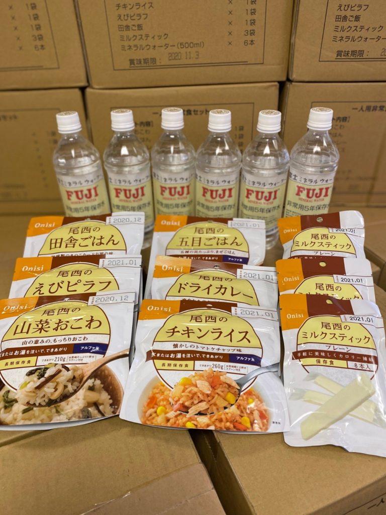青山商事株式会社様より、「非常用食品」200セットを寄贈していただきました