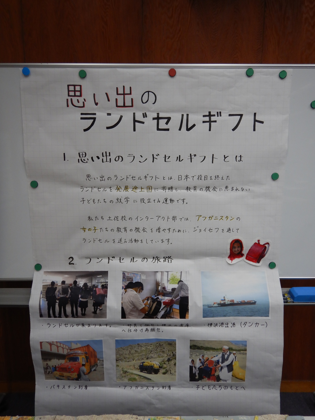 土佐中・高等学校のランドセルギフト。使わなくなったランドセルをパキスタンやアフガニスタンに届けます。