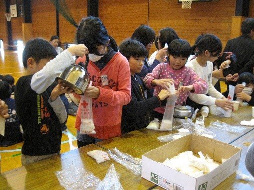 学校は、災害時には緊急の避難場所となります。避難所の設置や、非常食の炊き出し訓練等の体験学習を行います。