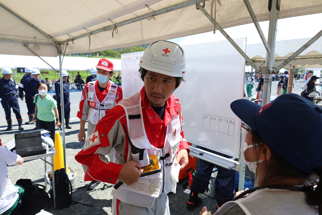 京都府総合防災訓練が9月3日に亀岡市保津川水辺公園等で行われました。日赤からは京都府支部、京都第一赤十字病院、京都第二赤十字病院、赤十字レスキューチェーン京都,が参加しました。今回の訓練の想定は、豪雨による土砂崩れなどの二次災害、また地震の発生といった大規模なものです。日赤のほかにも多くの機関が参加し、互いに連携を取りながら訓練が行われました。このような大きい規模の訓練に参加して得た知識は、実際の災害救護の際に役立つと思います。 ところで、訓練は豪雨を想定していますが、訓練当日の実際の天気は晴天で、かなり日差しが強く体調を崩された方もいました。実際の災害救護に派遣された際、自分自身の体調管理を入念に行うことが大切であると感じた訓練でした。