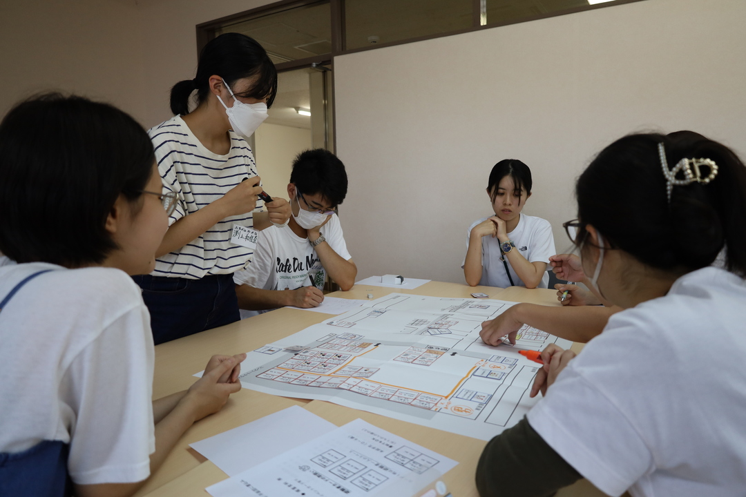 宮本講師による赤十字についての講義では、赤十字の成り立ちやその使命や活動などについて説明していただきました。また平面図とカードで避難所を作るシミュレーションを行い、避難所に関する理解を深めました。