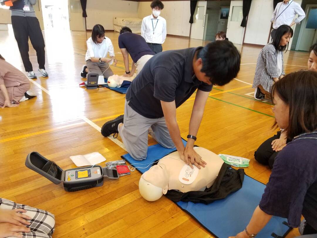 6月5日長岡京市立長法寺小学校において、先生方がプール開き前に一次救命処置の手順を確認するため研修会を開催されました。24名の先生方は子どもが事故に遭わないよう安全管理を確認するとともに、起こりうる「まさか」の事故に冷静に対応できるよう真剣に研修に取り組まれました。