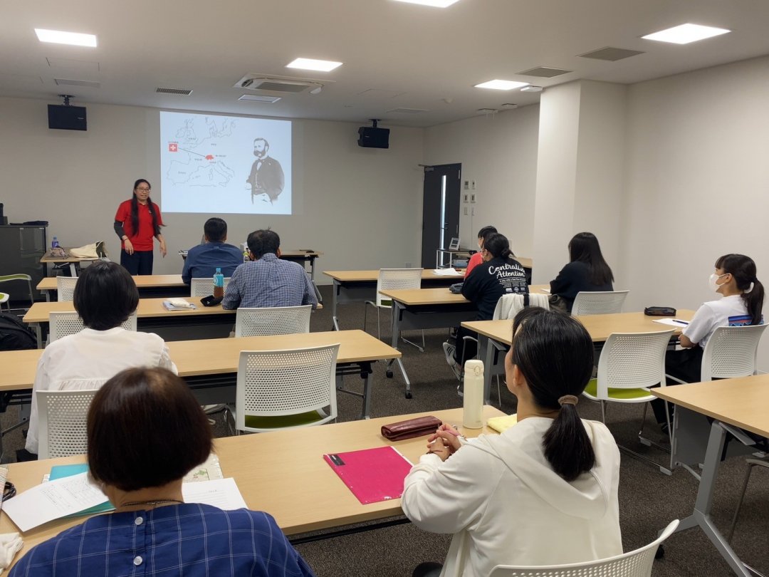 午前中に行われた『赤十字について』では、赤十字の成り立ちや基本原則、国際人道法について学びました。