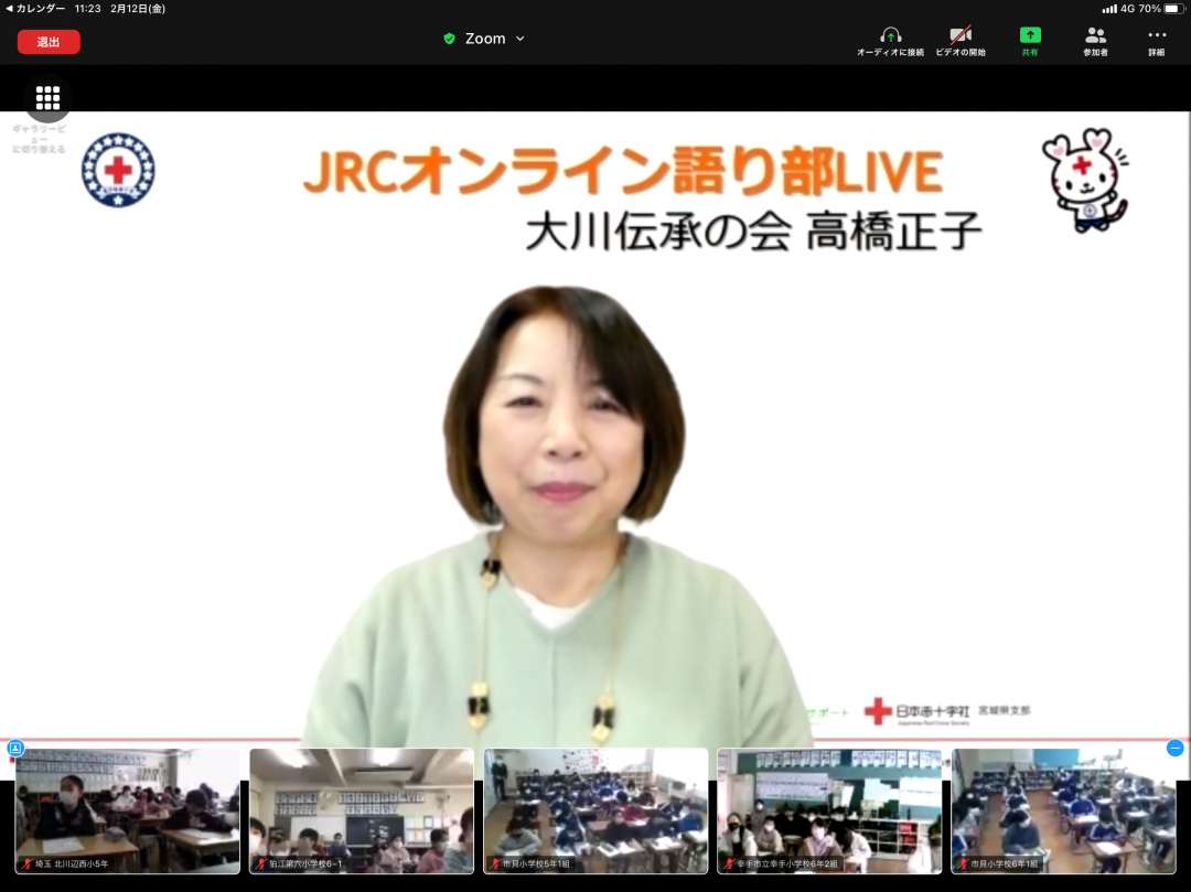 被災地で活動を続けているNPO(3.11みらいサポート(石巻))と協働し、現地での語り部活動を全国のJRC加盟校へwebを活用して配信しました。