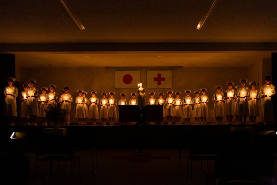この式は、入学から半年間の看護教育を受け、これから病院実習に臨む学生に、看護師という職業に対する意識を高め、命にかかわる責任の重さを自覚させるために執り行っています。