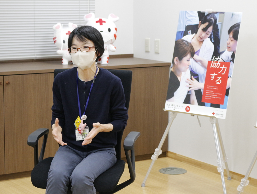 私は須坂市社会福祉協議会(社協)に置かれた日赤須坂市地区事務局で、日赤活動資金の募集、奉仕団の事務や、地域で防災講座を開催するなどの活動を行なっています。また社協職員として、広報紙「助け合い起こしすざか」の取材・編集・制作、HP・ブログの更新、会費募集、障がい者と一緒に行う旅行の企画など、一人何役もこなしています(笑)。