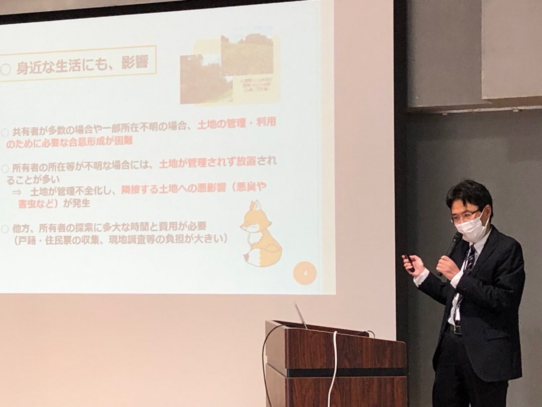 第2部では、長野地方法務局より、「土地と家の相続と遺言について~遺言書は残した方がいいの?~」と題し、令和6年4月1日から開始となった相続登記の申請の義務化について、所有不明土地問題の背景も含めて説明いただいたほか、遺言書の作成の重要性、遺言書保管制度について、分かりやすくご講演いただきました。