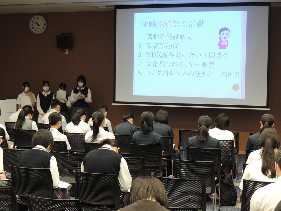 県内の青少年赤十字加盟高校から生徒と指導者(教諭)の約80名が出席して、昨年度の各学校が取り組んだ青少年赤十字(JRC)活動の報告、日赤本社や県支部主催行事に参加した生徒から研修内容等の報告、生徒役員の改選が行われました。