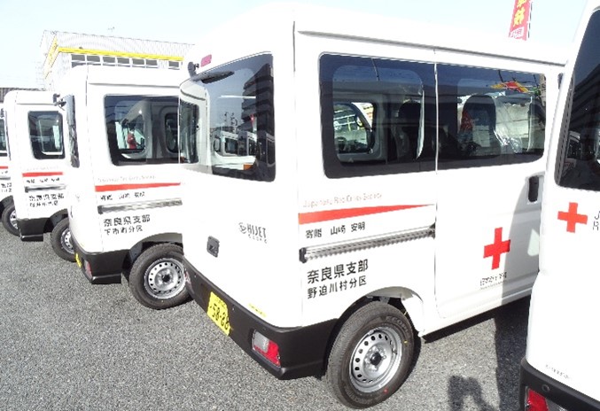 この度、奈良県支部では、山崎 安明 様からのご寄付により、県内地区分区に配備している災害救援車のうち、24台を更新しました。