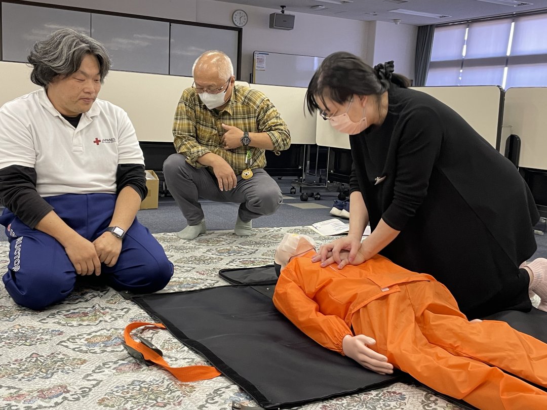 心肺蘇生やAEDの使用法などの救命手当を学ぶ救急法講習や、着衣泳(服を着たまま溺れた場合の対処方法)を学ぶ水上安全法講習などを開催しました。