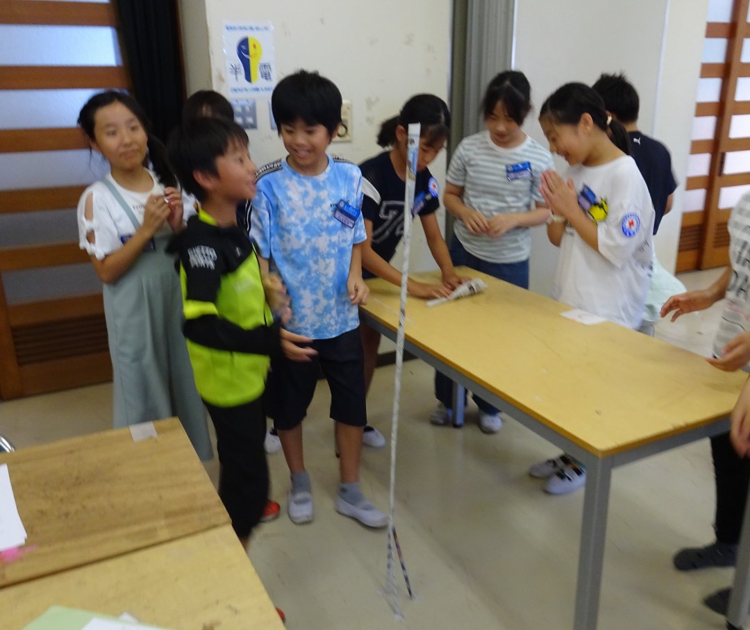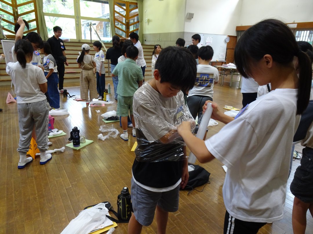 1日目は、赤十字のことを学び、身近なものを使った応急手当やコミュニケーションの大切さを学ぶ新聞タワー(新聞紙とテープのみでタワーを作り、その高さを競うワーク)をしました。