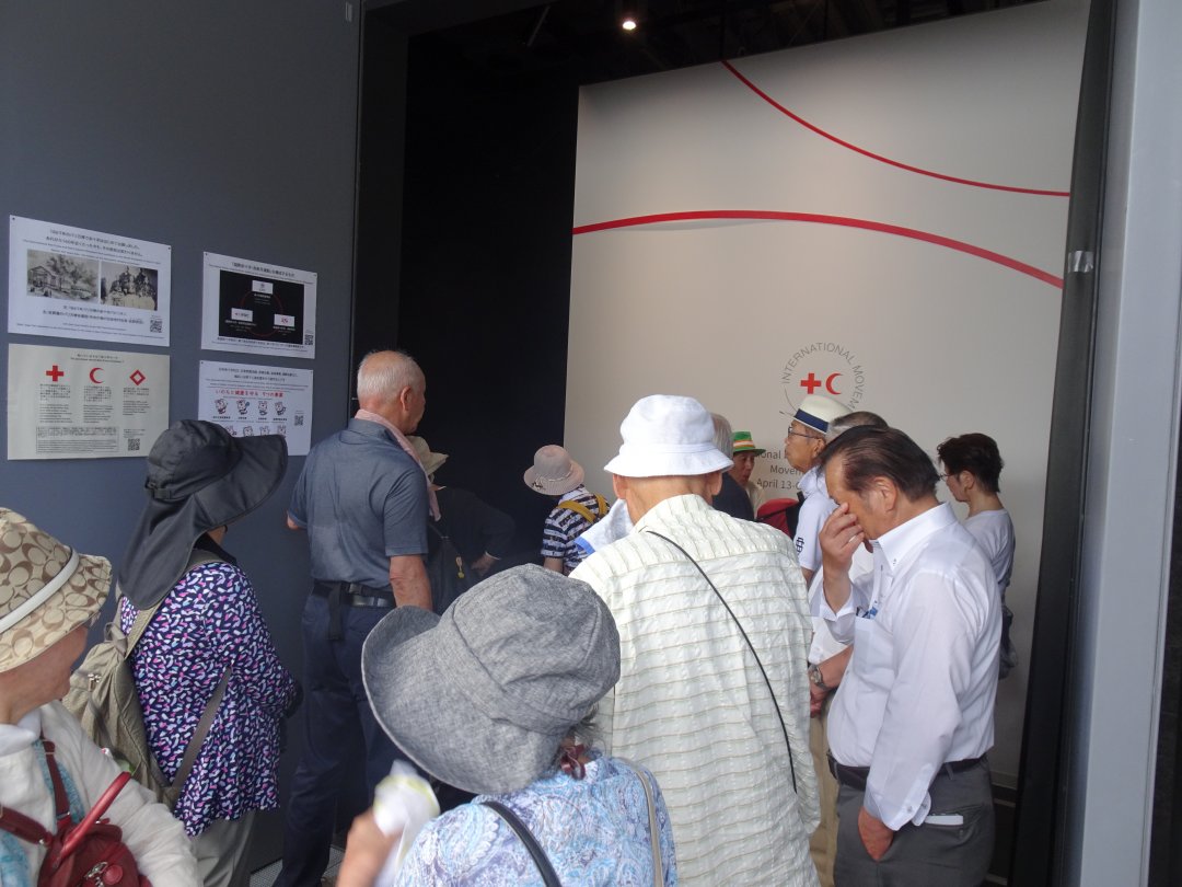 「国際赤十字・赤新月運動館」パビリオンでは、「わたしの“できる”は、誰かのためになる。」をコンセプトに、世界の人道危機、国内の災害に立ち向かう赤十字関係者のヒューマンストーリーを描いています。日頃より赤十字活動へ深いご理解とご支援をいただいている有功会会員の皆さまに、今一度、赤十字の理念や活動に触れていただく機会となりました。