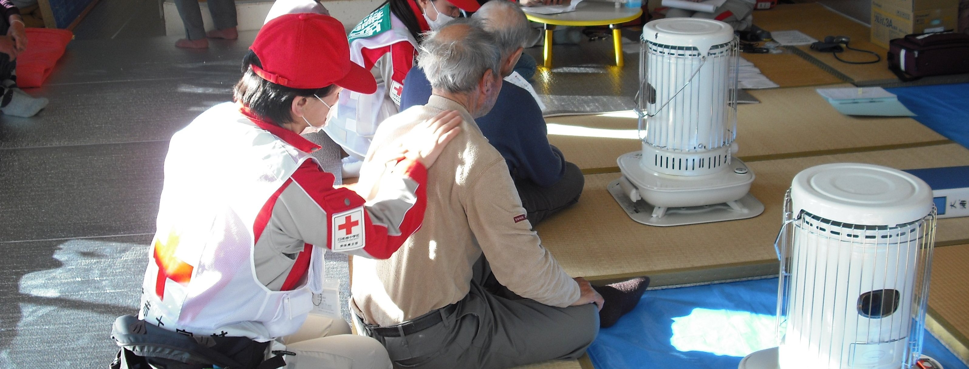 地震や台風などの自然災害発生時に、全国の赤十字と連携し現地に駆けつけ救護活動を行います。