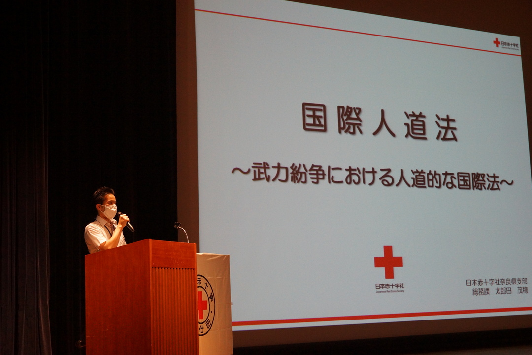 研修①は現在の情勢から「国際人道法」をテーマに挙げ、赤十字と国際人道法の関係性について学んでいただきました。